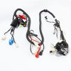 A motorcycle wiring loom, also known as a wiring harness, is a bundle of wires and connectors that transmits electrical power and signals throughout the motorcycle. It organizes and protects the electrical wiring, ensuring connections between components such as the ignition system, lighting, and various sensors. The loom is typically wrapped in protective sheathing to guard against wear and damage, and is designed to streamline installation and maintain a neat, efficient electrical system.