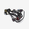 A motorcycle wiring loom, also known as a wiring harness, is a bundle of wires and connectors that transmits electrical power and signals throughout the motorcycle. It organizes and protects the electrical wiring, ensuring connections between components such as the ignition system, lighting, and various sensors. The loom is typically wrapped in protective sheathing to guard against wear and damage, and is designed to streamline installation and maintain a neat, efficient electrical system.