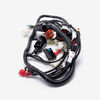 A motorcycle wiring loom, also known as a wiring harness, is a bundle of wires and connectors that transmits electrical power and signals throughout the motorcycle. It organizes and protects the electrical wiring, ensuring connections between components such as the ignition system, lighting, and various sensors. The loom is typically wrapped in protective sheathing to guard against wear and damage, and is designed to streamline installation and maintain a neat, efficient electrical system.