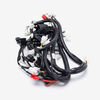 A motorcycle wiring loom, also known as a wiring harness, is a bundle of wires and connectors that transmits electrical power and signals throughout the motorcycle. It organizes and protects the electrical wiring, ensuring connections between components such as the ignition system, lighting, and various sensors. The loom is typically wrapped in protective sheathing to guard against wear and damage, and is designed to streamline installation and maintain a neat, efficient electrical system.