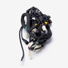A motorcycle wiring loom, also known as a wiring harness, is a bundle of wires and connectors that transmits electrical power and signals throughout the motorcycle. It organizes and protects the electrical wiring, ensuring connections between components such as the ignition system, lighting, and various sensors. The loom is typically wrapped in protective sheathing to guard against wear and damage, and is designed to streamline installation and maintain a neat, efficient electrical system.