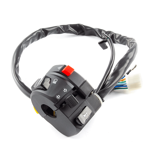 A motorcycle wiring loom, also known as a wiring harness, is a bundle of wires and connectors that transmits electrical power and signals throughout the motorcycle. It organizes and protects the electrical wiring, ensuring connections between components such as the ignition system, lighting, and various sensors. The loom is typically wrapped in protective sheathing to guard against wear and damage, and is designed to streamline installation and maintain a neat, efficient electrical system.