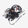 A motorcycle wiring loom, also known as a wiring harness, is a bundle of wires and connectors that transmits electrical power and signals throughout the motorcycle. It organizes and protects the electrical wiring, ensuring connections between components such as the ignition system, lighting, and various sensors. The loom is typically wrapped in protective sheathing to guard against wear and damage, and is designed to streamline installation and maintain a neat, efficient electrical system.