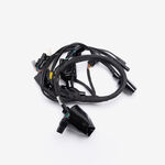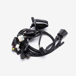 A motorcycle wiring loom, also known as a wiring harness, is a bundle of wires and connectors that transmits electrical power and signals throughout the motorcycle. It organizes and protects the electrical wiring, ensuring connections between components such as the ignition system, lighting, and various sensors. The loom is typically wrapped in protective sheathing to guard against wear and damage, and is designed to streamline installation and maintain a neat, efficient electrical system.
