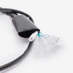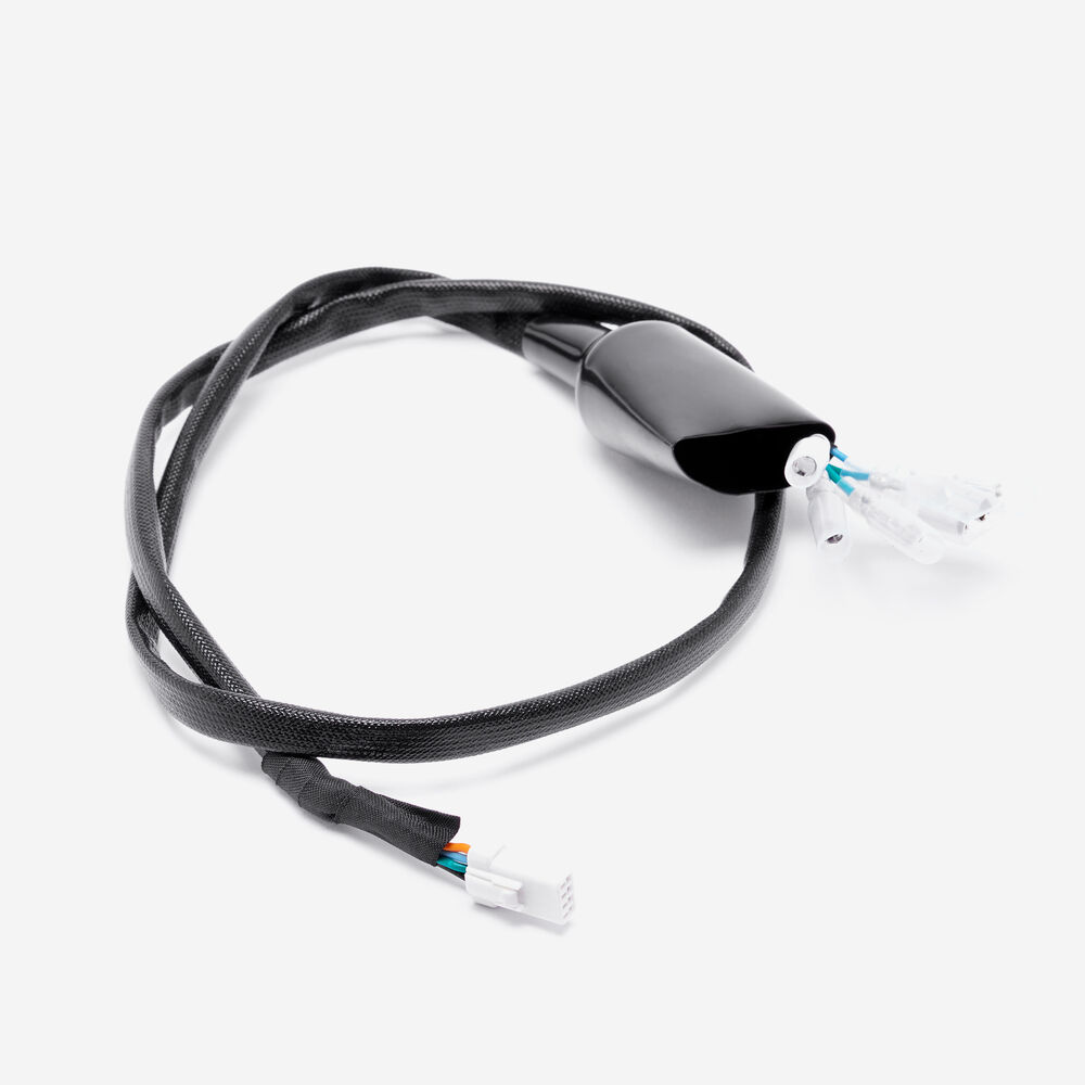A motorcycle wiring loom, also known as a wiring harness, is a bundle of wires and connectors that transmits electrical power and signals throughout the motorcycle. It organizes and protects the electrical wiring, ensuring connections between components such as the ignition system, lighting, and various sensors. The loom is typically wrapped in protective sheathing to guard against wear and damage, and is designed to streamline installation and maintain a neat, efficient electrical system.