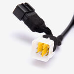 A motorcycle wiring loom, also known as a wiring harness, is a bundle of wires and connectors that transmits electrical power and signals throughout the motorcycle. It organizes and protects the electrical wiring, ensuring connections between components such as the ignition system, lighting, and various sensors. The loom is typically wrapped in protective sheathing to guard against wear and damage, and is designed to streamline installation and maintain a neat, efficient electrical system.