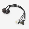 A motorcycle wiring loom, also known as a wiring harness, is a bundle of wires and connectors that transmits electrical power and signals throughout the motorcycle. It organizes and protects the electrical wiring, ensuring connections between components such as the ignition system, lighting, and various sensors. The loom is typically wrapped in protective sheathing to guard against wear and damage, and is designed to streamline installation and maintain a neat, efficient electrical system.