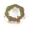 A washer is a flat, typically circular metal or plastic component used in motorcycle assemblies. It is placed between a fastener (like a bolt or nut) and the surface it is fastening to.