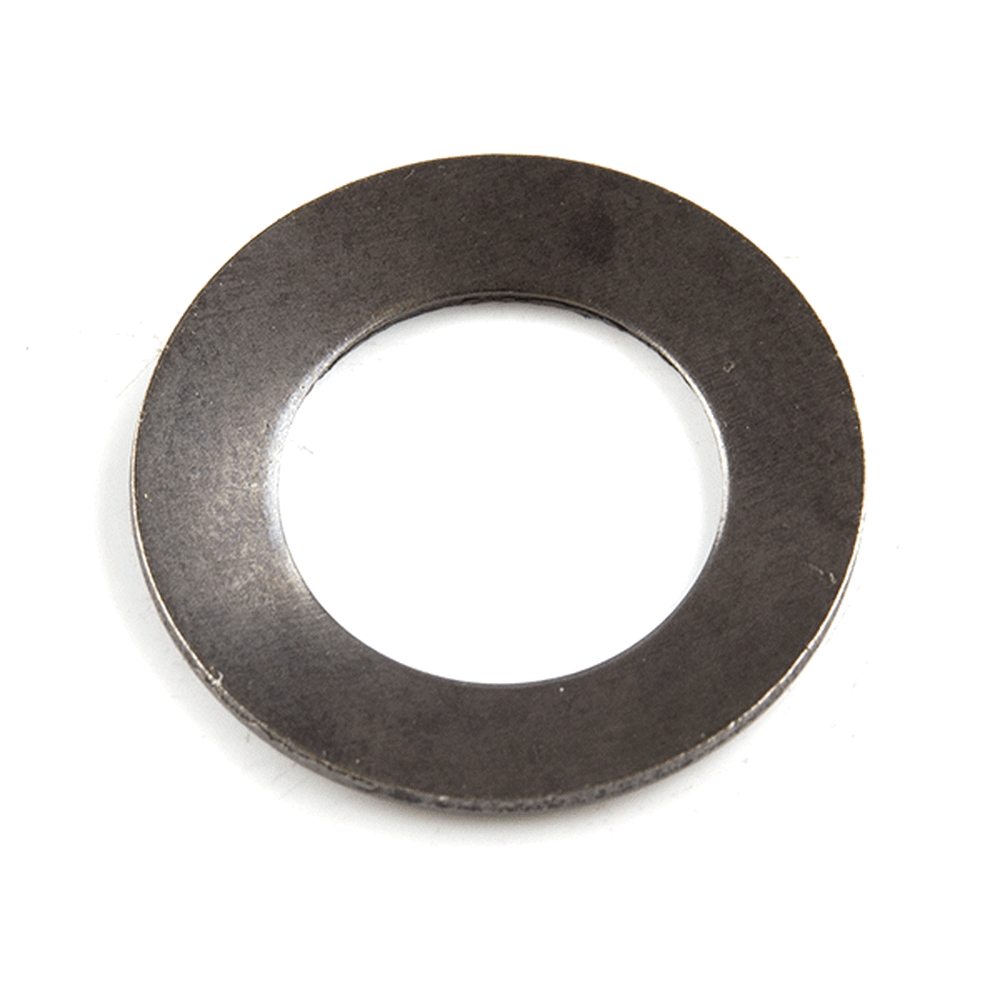 A washer is a flat, typically circular metal or plastic component used in motorcycle assemblies. It is placed between a fastener (like a bolt or nut) and the surface it is fastening to.