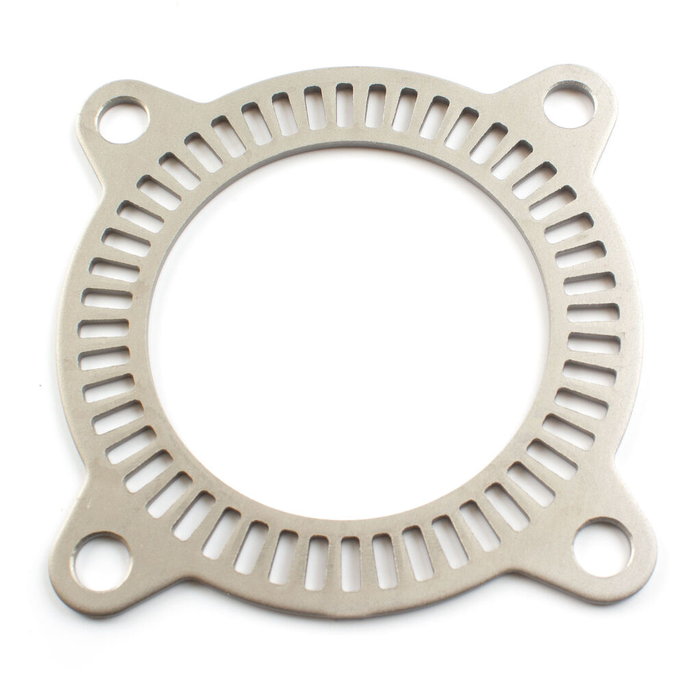 A washer is a flat, typically circular metal or plastic component used in motorcycle assemblies. It is placed between a fastener (like a bolt or nut) and the surface it is fastening to.