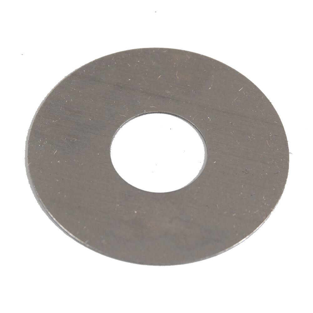 A washer is a flat, typically circular metal or plastic component used in motorcycle assemblies. It is placed between a fastener (like a bolt or nut) and the surface it is fastening to.