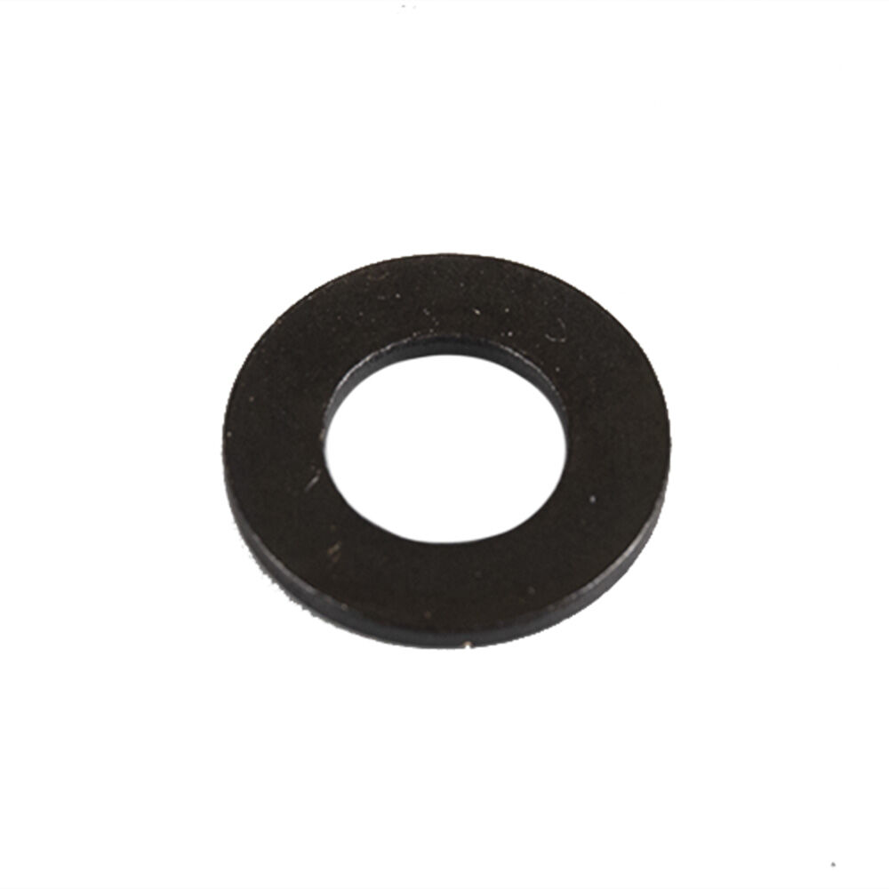 A washer is a flat, typically circular metal or plastic component used in motorcycle assemblies. It is placed between a fastener (like a bolt or nut) and the surface it is fastening to.