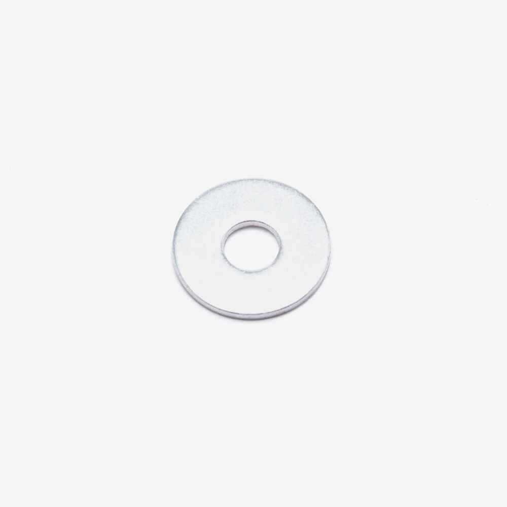 A washer is a flat, typically circular metal or plastic component used in motorcycle assemblies. It is placed between a fastener (like a bolt or nut) and the surface it is fastening to.