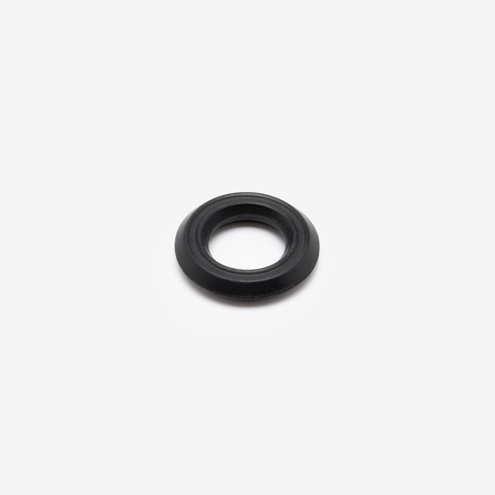 A washer is a flat, typically circular metal or plastic component used in motorcycle assemblies. It is placed between a fastener (like a bolt or nut) and the surface it is fastening to.