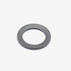 A washer is a flat, typically circular metal or plastic component used in motorcycle assemblies. It is placed between a fastener (like a bolt or nut) and the surface it is fastening to.