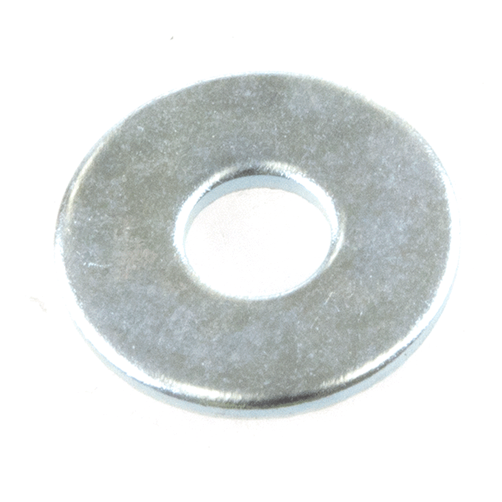 A washer is a flat, typically circular metal or plastic component used in motorcycle assemblies. It is placed between a fastener (like a bolt or nut) and the surface it is fastening to.