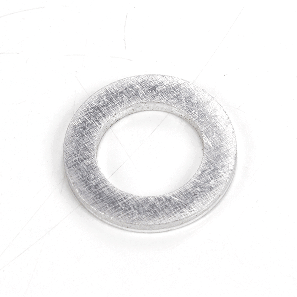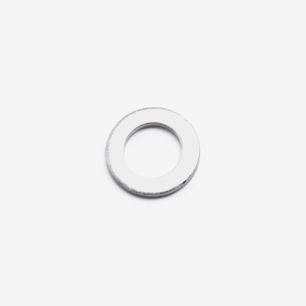 A washer is a flat, typically circular metal or plastic component used in motorcycle assemblies. It is placed between a fastener (like a bolt or nut) and the surface it is fastening to.