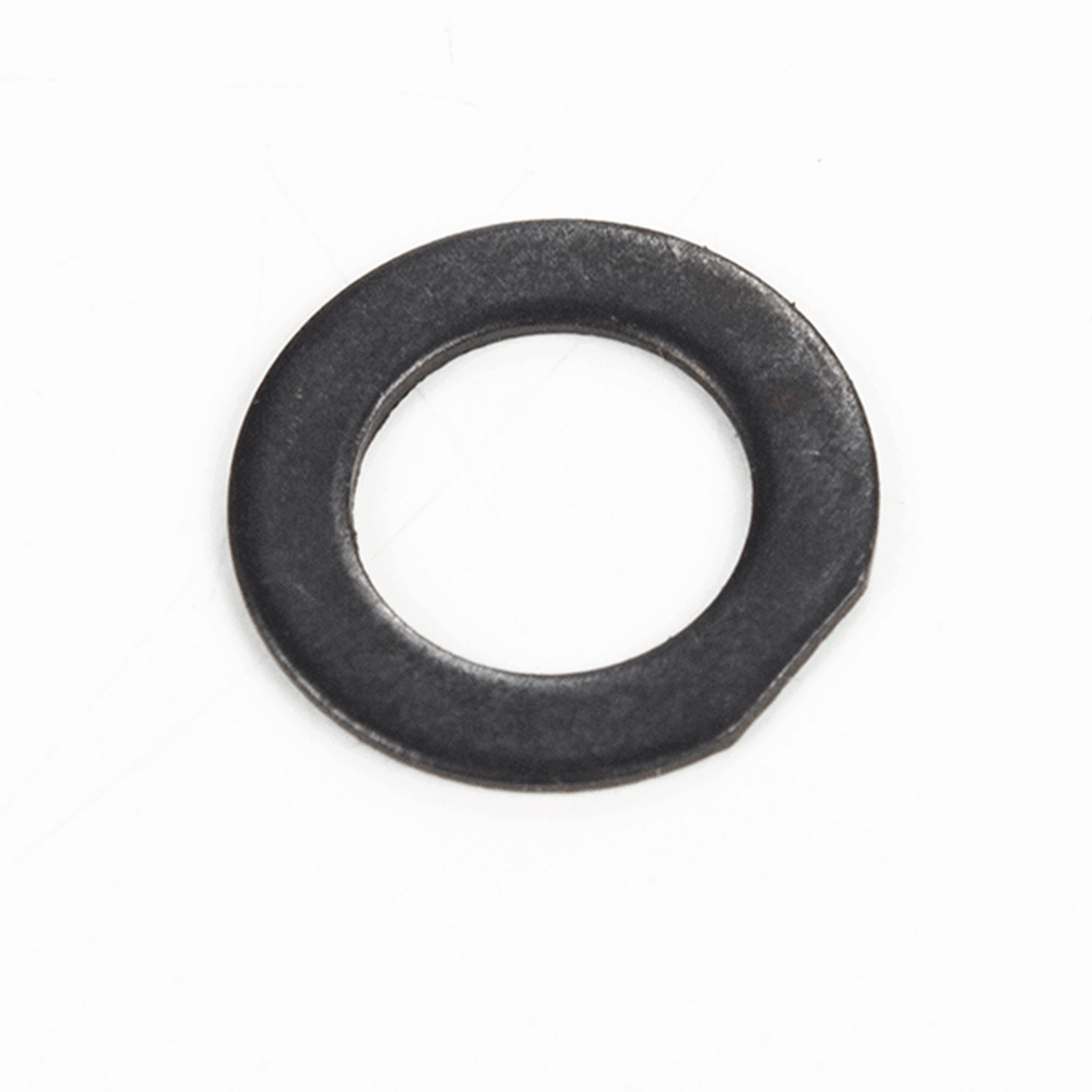 A washer is a flat, typically circular metal or plastic component used in motorcycle assemblies. It is placed between a fastener (like a bolt or nut) and the surface it is fastening to.
