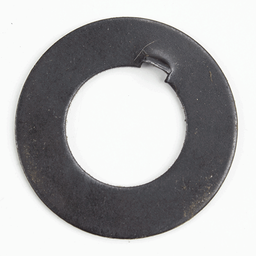 A washer is a flat, typically circular metal or plastic component used in motorcycle assemblies. It is placed between a fastener (like a bolt or nut) and the surface it is fastening to.