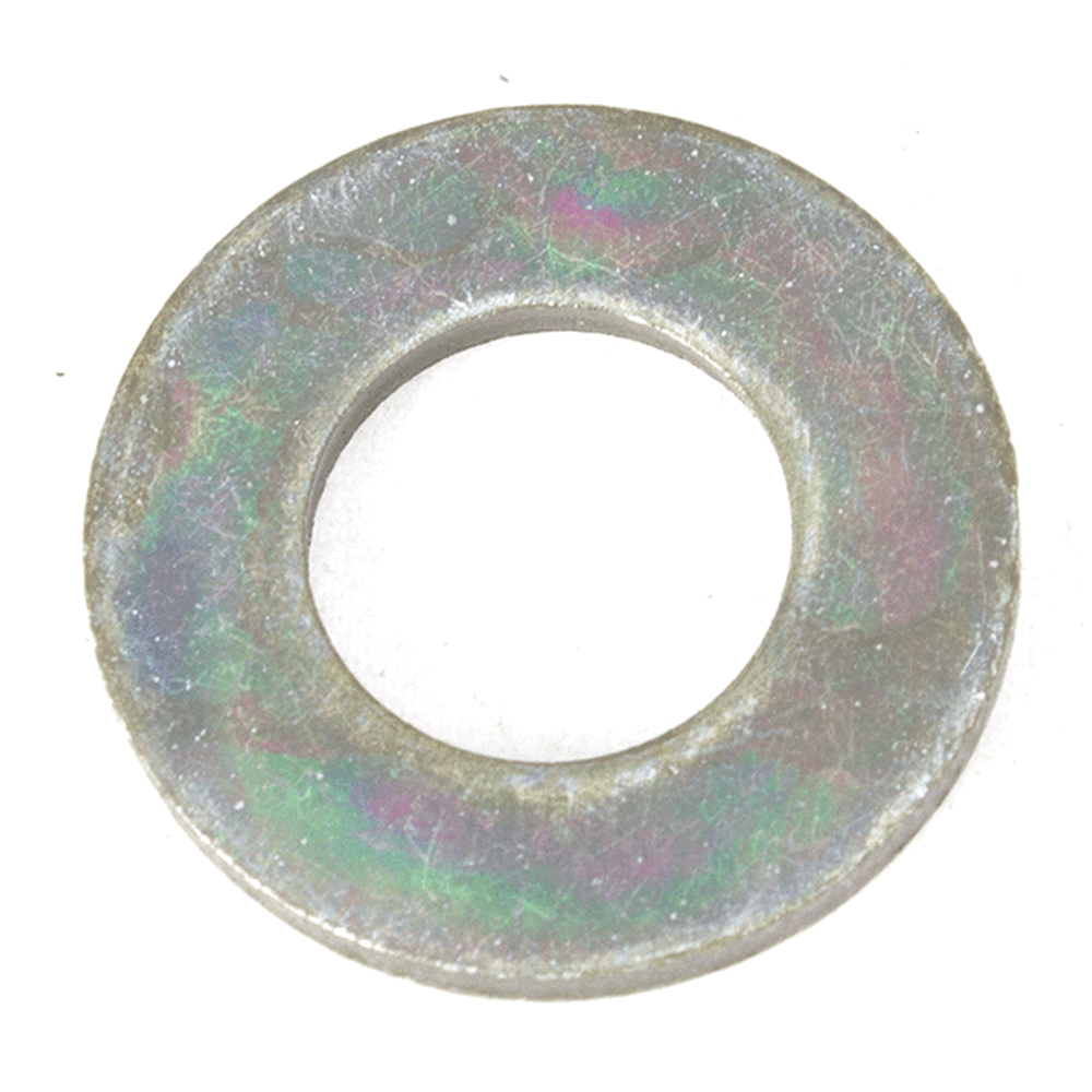 A washer is a flat, typically circular metal or plastic component used in motorcycle assemblies. It is placed between a fastener (like a bolt or nut) and the surface it is fastening to.