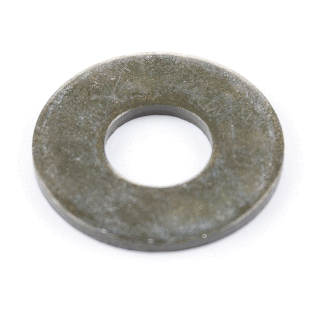 A washer is a flat, typically circular metal or plastic component used in motorcycle assemblies. It is placed between a fastener (like a bolt or nut) and the surface it is fastening to.