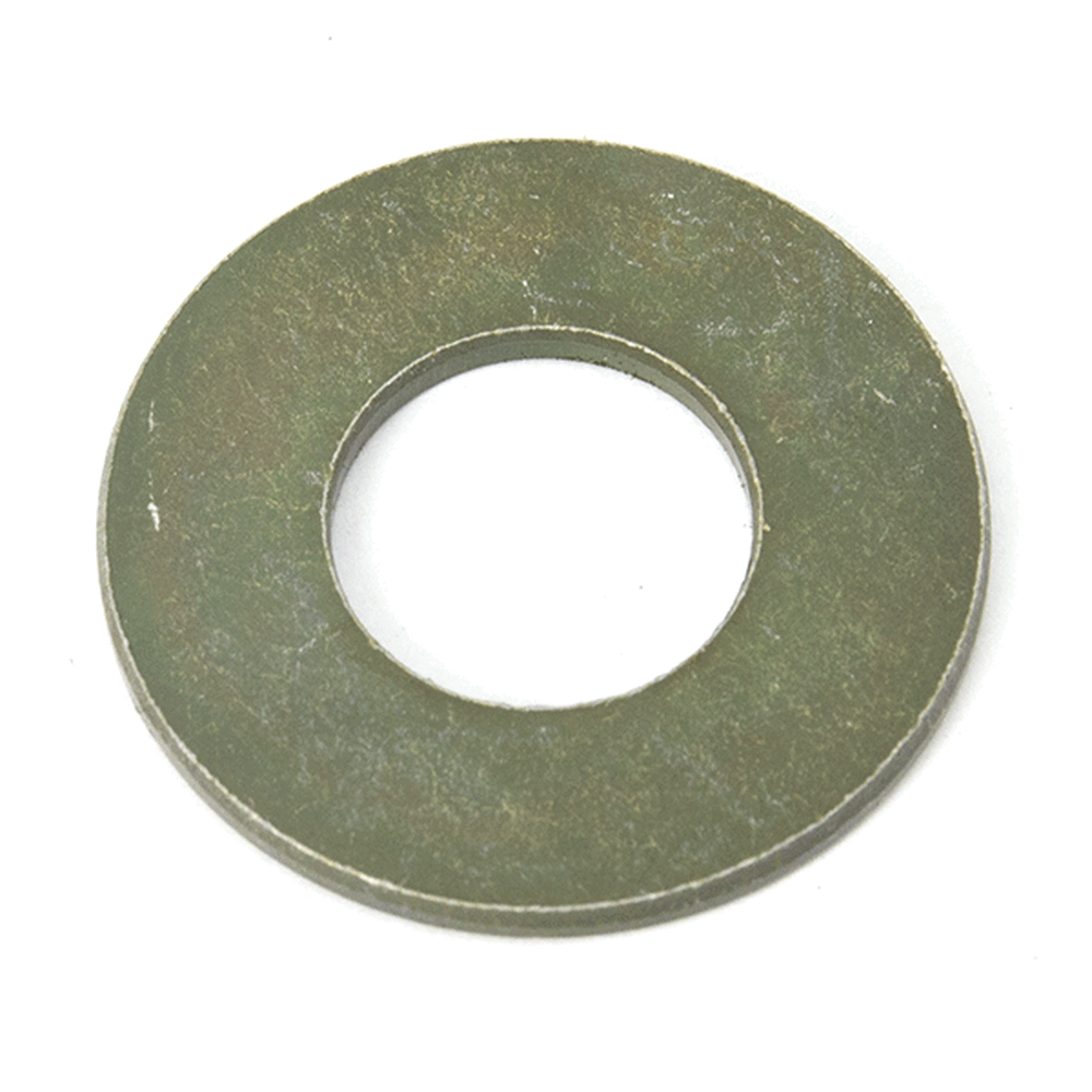 A washer is a flat, typically circular metal or plastic component used in motorcycle assemblies. It is placed between a fastener (like a bolt or nut) and the surface it is fastening to.