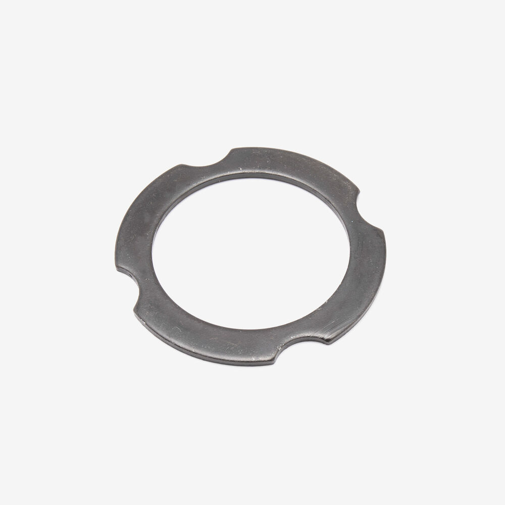 A lock washer is a type of washer used in a motorcycle's assembly to prevent nuts and bolts from loosening due to vibration and torque. It features a design, such as split ends or teeth, that creates extra friction and resistance, securing fasteners in place. Lock washers are essential for maintaining the integrity and safety of various components by ensuring connections remain tight and secure.