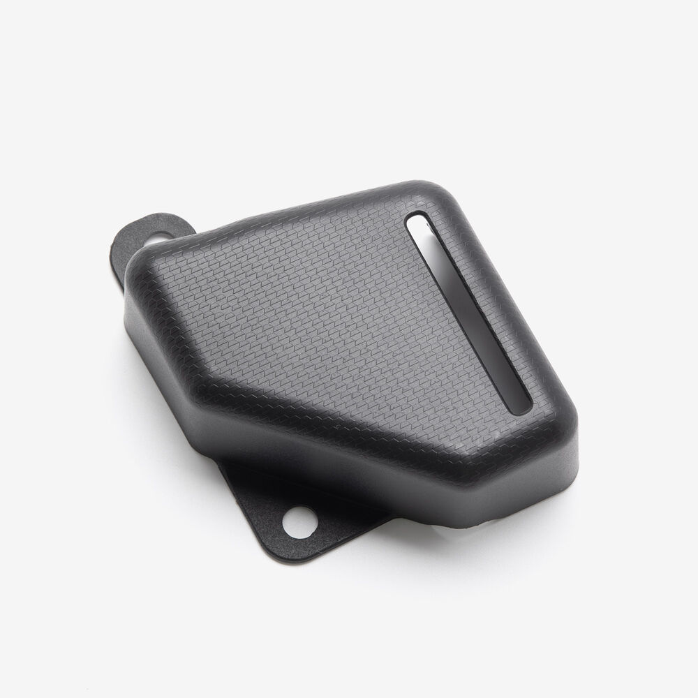 The coolant reservoir, also known as the expansion tank or overflow tank, is a container that holds excess coolant from the motorcycle's cooling system. It is designed to accommodate the expansion of coolant as it heats up and to ensure there is always an adequate supply of coolant available for the engine. Positioned near the radiator or cooling system, the reservoir helps to maintain proper coolant levels and prevents overheating by allowing coolant to return to the system as it cools down.