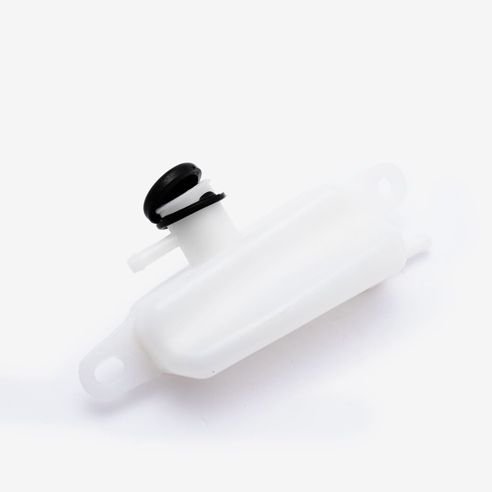 The coolant reservoir, also known as the expansion tank or overflow tank, is a container that holds excess coolant from the motorcycle's cooling system. It is designed to accommodate the expansion of coolant as it heats up and to ensure there is always an adequate supply of coolant available for the engine. Positioned near the radiator or cooling system, the reservoir helps to maintain proper coolant levels and prevents overheating by allowing coolant to return to the system as it cools down.