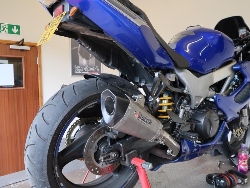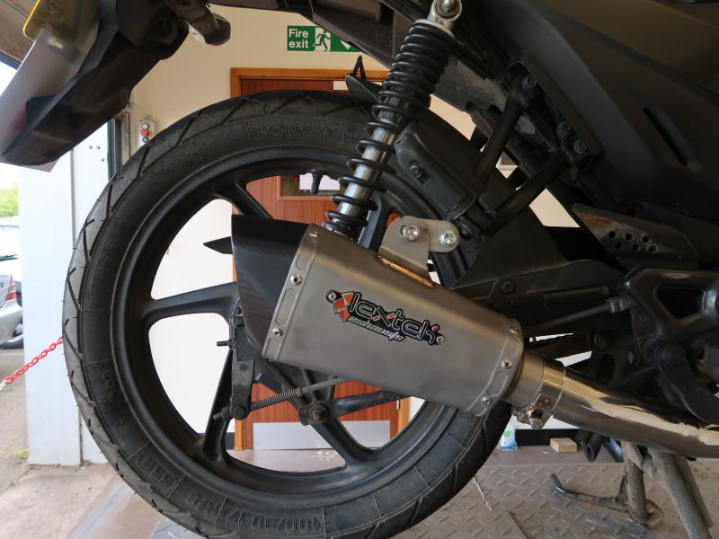Contents: Lextek Taper Hexagonal S/Steel Titanium Look Finish Exhaust Silencer 51mm with Carbon Tip Slip-on