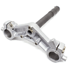 The bottom yoke, also known as the lower triple clamp, is a crucial component in a motorcycle's front suspension system. It connects the two fork tubes and secures them to the steering stem, providing stability and alignment for proper steering and handling. Typically made from durable materials like aluminum or steel, the bottom yoke ensures rigidity and strength while supporting the front end of the motorcycle.