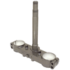 The bottom yoke, also known as the lower triple clamp, is a crucial component in a motorcycle's front suspension system. It connects the two fork tubes and secures them to the steering stem, providing stability and alignment for proper steering and handling. Typically made from durable materials like aluminum or steel, the bottom yoke ensures rigidity and strength while supporting the front end of the motorcycle.