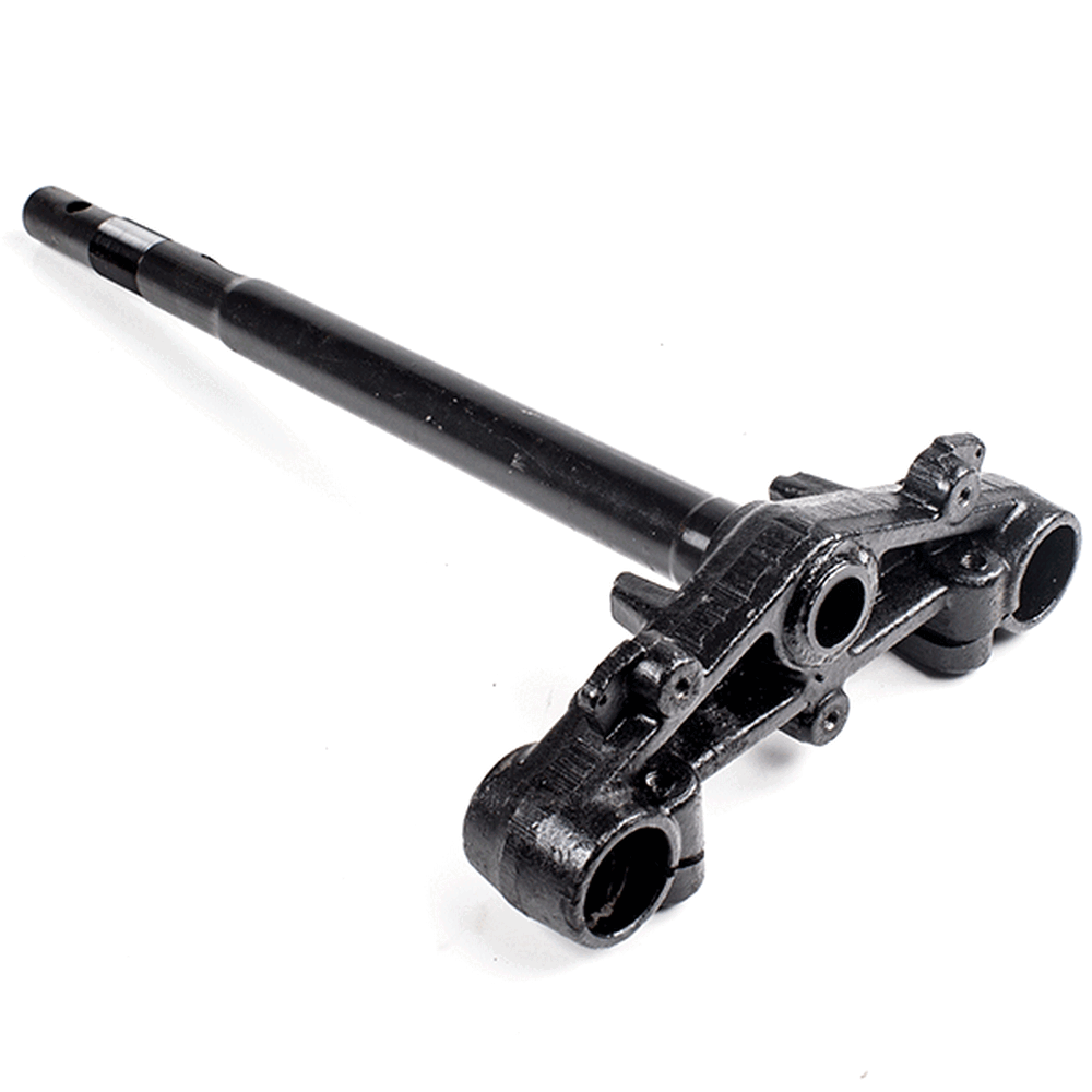 The bottom yoke, also known as the lower triple clamp, is a crucial component in a motorcycle's front suspension system. It connects the two fork tubes and secures them to the steering stem, providing stability and alignment for proper steering and handling. Typically made from durable materials like aluminum or steel, the bottom yoke ensures rigidity and strength while supporting the front end of the motorcycle.