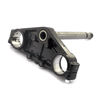 The bottom yoke, also known as the lower triple clamp, is a crucial component in a motorcycle's front suspension system. It connects the two fork tubes and secures them to the steering stem, providing stability and alignment for proper steering and handling. Typically made from durable materials like aluminum or steel, the bottom yoke ensures rigidity and strength while supporting the front end of the motorcycle.