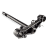 The bottom yoke, also known as the lower triple clamp, is a crucial component in a motorcycle's front suspension system. It connects the two fork tubes and secures them to the steering stem, providing stability and alignment for proper steering and handling. Typically made from durable materials like aluminum or steel, the bottom yoke ensures rigidity and strength while supporting the front end of the motorcycle.