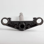 The bottom yoke, also known as the lower triple clamp, is a crucial component in a motorcycle's front suspension system. It connects the two fork tubes and secures them to the steering stem, providing stability and alignment for proper steering and handling. Typically made from durable materials like aluminum or steel, the bottom yoke ensures rigidity and strength while supporting the front end of the motorcycle.
