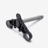 The bottom yoke, also known as the lower triple clamp, is a crucial component in a motorcycle's front suspension system. It connects the two fork tubes and secures them to the steering stem, providing stability and alignment for proper steering and handling. Typically made from durable materials like aluminum or steel, the bottom yoke ensures rigidity and strength while supporting the front end of the motorcycle.