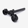 The bottom yoke, also known as the lower triple clamp, is a crucial component in a motorcycle's front suspension system. It connects the two fork tubes and secures them to the steering stem, providing stability and alignment for proper steering and handling. Typically made from durable materials like aluminum or steel, the bottom yoke ensures rigidity and strength while supporting the front end of the motorcycle.