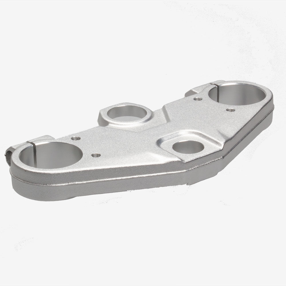A motorcycle fork connects a motorcycle's front wheel and axle to its frame, typically via a yoke, also known as a triple clamp, which consists of an upper yoke joined to a lower yoke via a steering stem, a shaft that runs through the steering head, creating the steering axis.