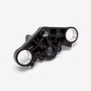 A motorcycle fork connects a motorcycle's front wheel and axle to its frame, typically via a yoke, also known as a triple clamp, which consists of an upper yoke joined to a lower yoke via a steering stem, a shaft that runs through the steering head, creating the steering axis.