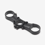A motorcycle fork connects a motorcycle's front wheel and axle to its frame, typically via a yoke, also known as a triple clamp, which consists of an upper yoke joined to a lower yoke via a steering stem, a shaft that runs through the steering head, creating the steering axis.