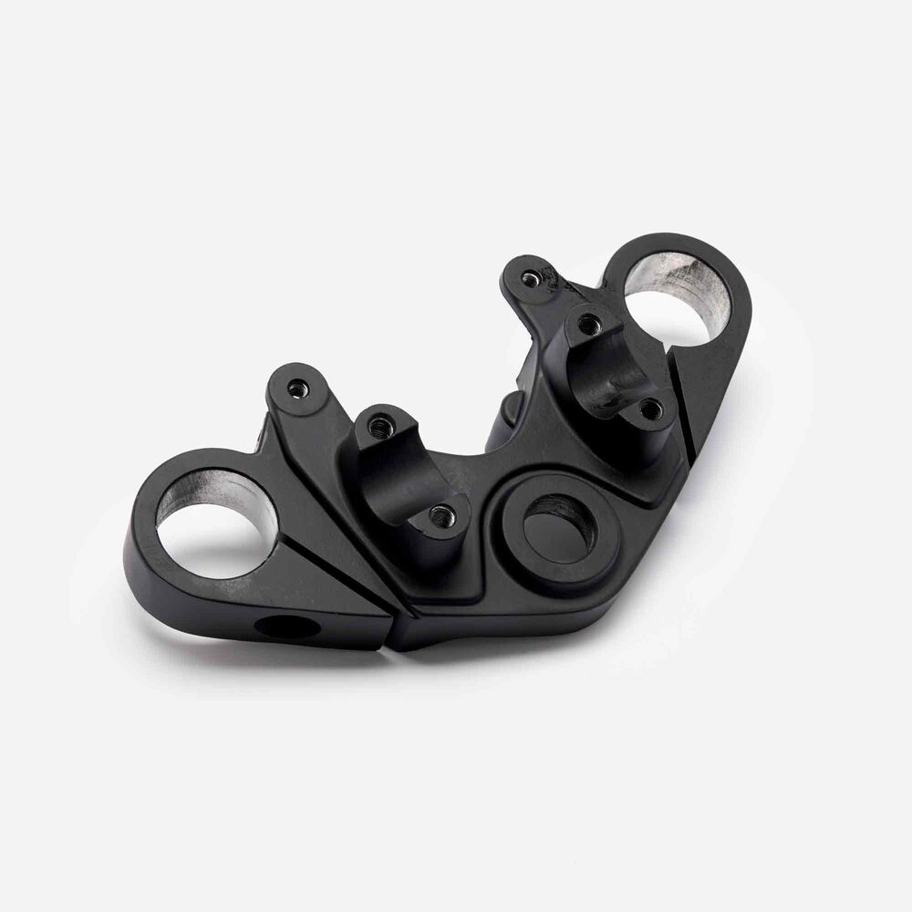 A motorcycle fork connects a motorcycle's front wheel and axle to its frame, typically via a yoke, also known as a triple clamp, which consists of an upper yoke joined to a lower yoke via a steering stem, a shaft that runs through the steering head, creating the steering axis.
