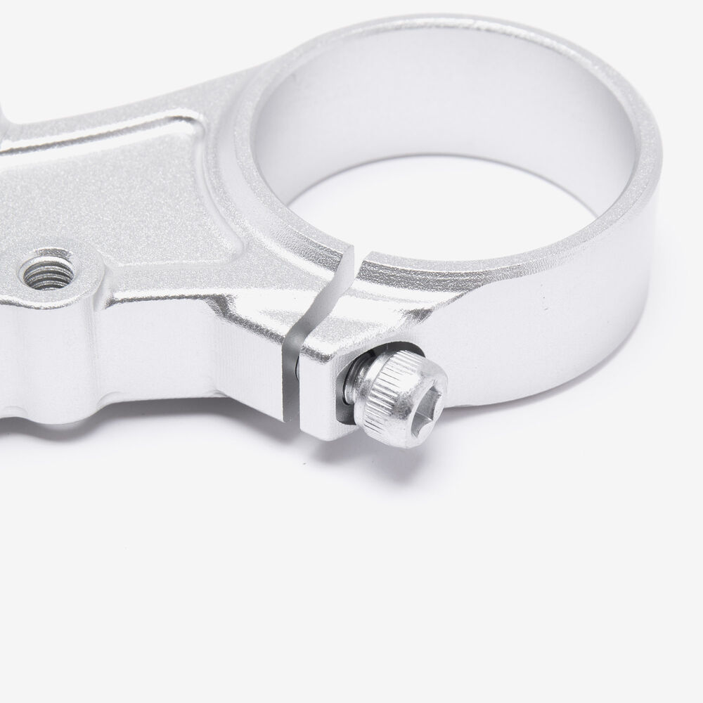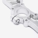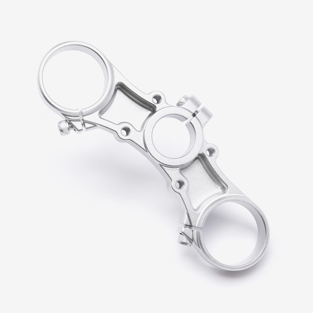 A motorcycle fork connects a motorcycle's front wheel and axle to its frame, typically via a yoke, also known as a triple clamp, which consists of an upper yoke joined to a lower yoke via a steering stem, a shaft that runs through the steering head, creating the steering axis.