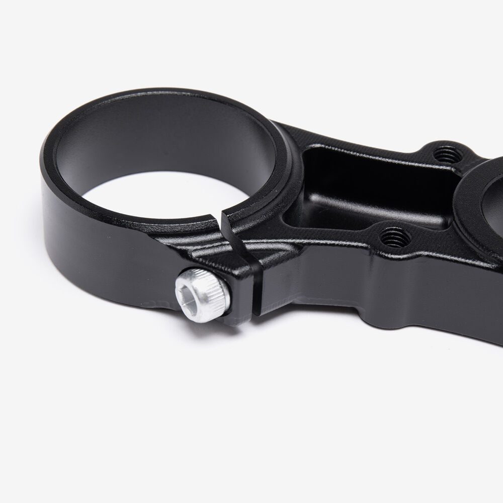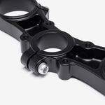 A motorcycle fork connects a motorcycle's front wheel and axle to its frame, typically via a yoke, also known as a triple clamp, which consists of an upper yoke joined to a lower yoke via a steering stem, a shaft that runs through the steering head, creating the steering axis.