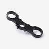 A motorcycle fork connects a motorcycle's front wheel and axle to its frame, typically via a yoke, also known as a triple clamp, which consists of an upper yoke joined to a lower yoke via a steering stem, a shaft that runs through the steering head, creating the steering axis.